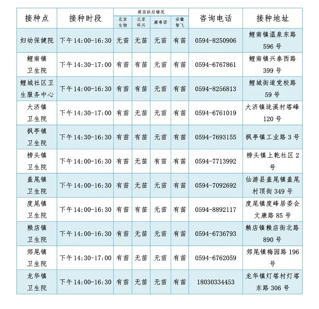 2022年12月8日仙游县开通全民新冠病毒疫苗接种点提醒如下: