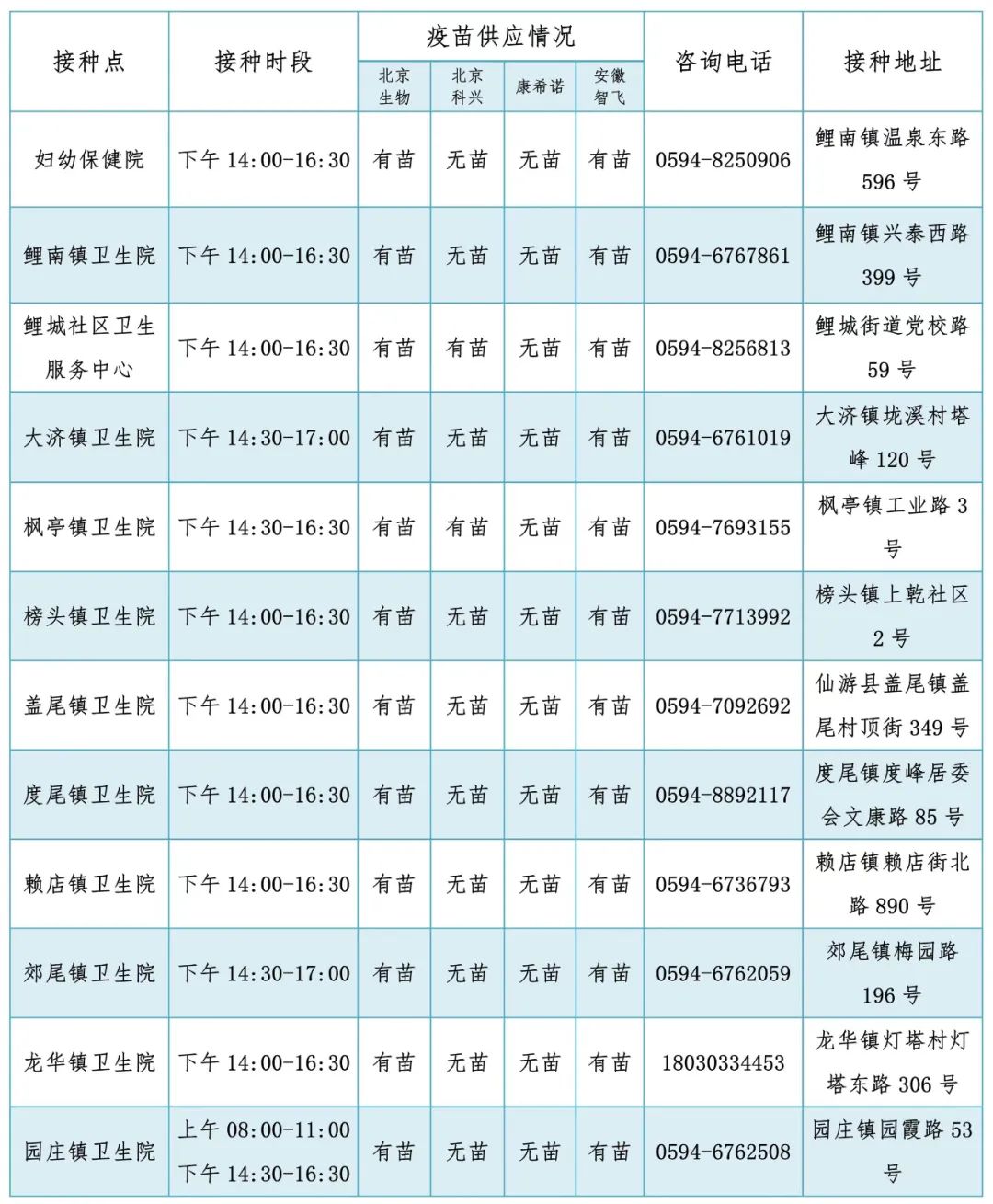 2022年12月19日仙游县开通全民新冠病毒疫苗接种点提醒如下:
