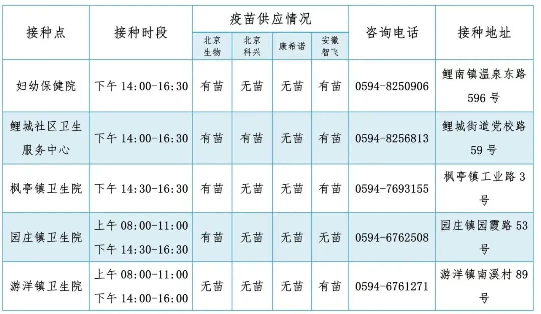 2022年12月27日仙游县开通全民新冠病毒疫苗接种点提醒如下: