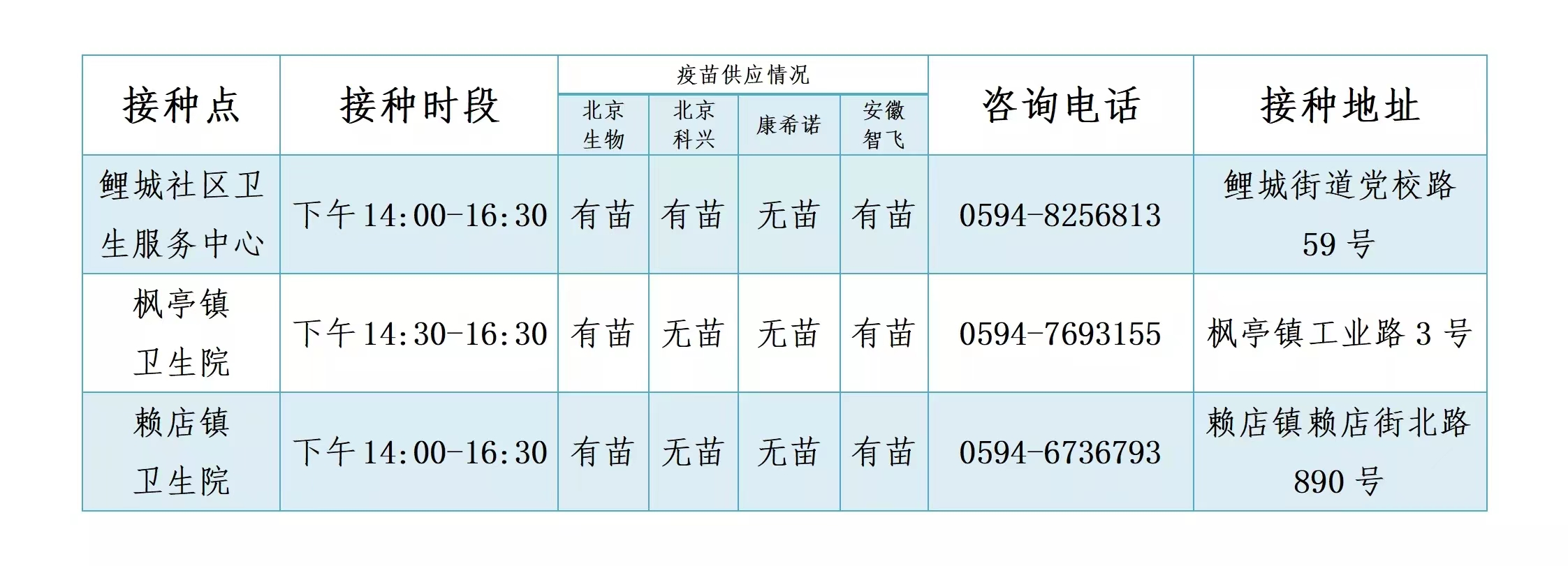 2022年12月28日仙游县开通全民新冠病毒疫苗接种点提醒如下: