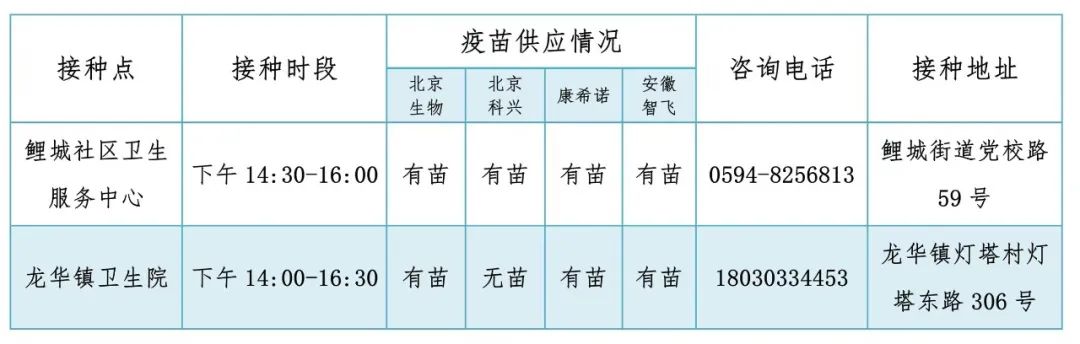 1.各接种点第一、二、三剂次均可接种,接种者须携带身份证就近前往各接种点接种新冠疫苗,预约取号或现场排队。各接种点具体疫苗接种安排可直接咨询对应接种点。