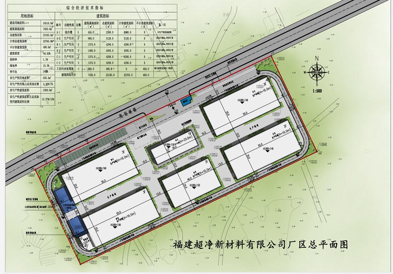 该项目位于仙游县经济开发区,福建超净新材料有限公司于2020年2月13日签订《国有建设用地使用权出让合同》(编号:35032220191202G009),出让宗地总面积为16518.9平方米,该地块的土地用途为:工矿仓储用地—工业用地(纺织业),主要经济指标:1.3≤容积率≤3.0,建筑密度≥40%,10%≤绿地率≤20%。