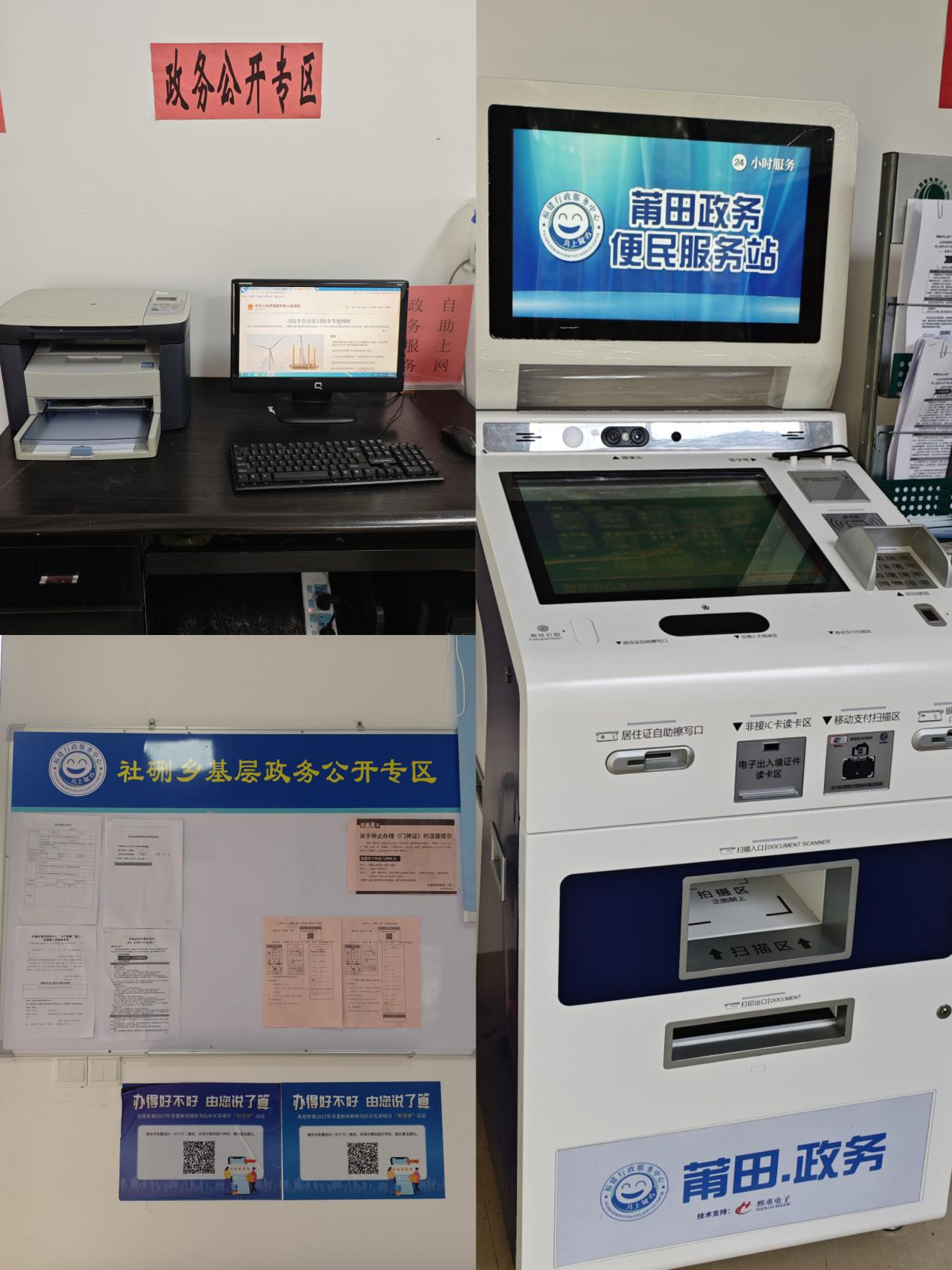 二、高品质服务。在政务公开专区配备自助上网电脑、打印机,方便群众线上查询各类信息;设置政务公开栏,方便群众了解最新通知通报、公示公告等;配备一台“e政务”自助服务终端机,群众能够实现自助查询、自助办理,实现多部门业务全流程受理和办理,让群众享受到“就近能办、多点可办、少跑快办”的优质服务。