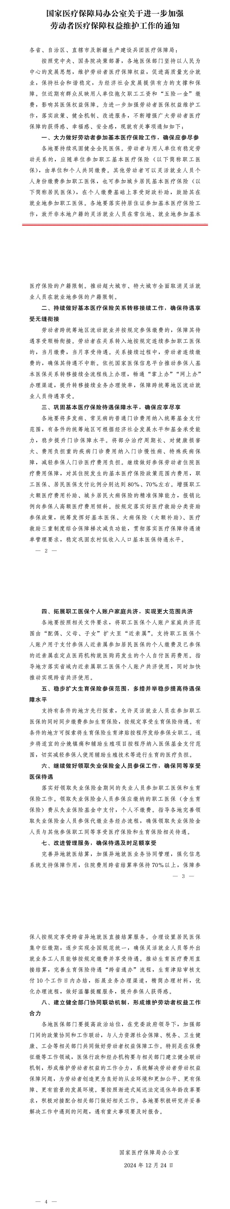 国家医疗保障局办公室关于进一步加强劳动者医疗保障权益维护工作的通知