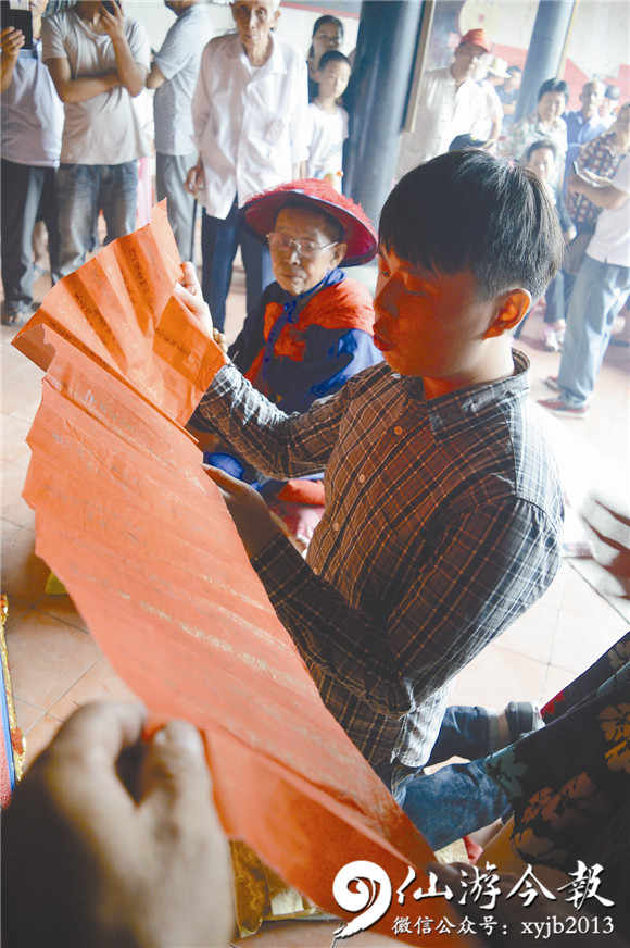“入耄耋之年的台胞刘扬清,携祖孙三代人特地从台湾还乡祭祖”则又是一段佳话。去年中元节,已经步入耄耋之年的刘扬清携儿孙,三代人特地从台湾还乡祭祖。大学刚毕业的刘扬清长孙子刘冠廷,跪在祠堂前宣读长长的祭文令在场的每位刘氏子孙动容。而70多年前的刘扬清,小学毕业考上当时的仙游县学时,也曾跪在这里宣读祭文。