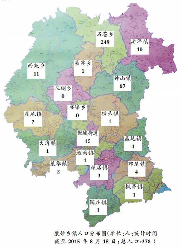 康姓在全国范围内人口较多,约占全国汉族人口的0.23%。至秦代,康姓开始向西、或向东继续繁衍播迁,以致后来在陕西(京兆郡)、山东(东平郡)两省形成了早期康姓两个大的族派。