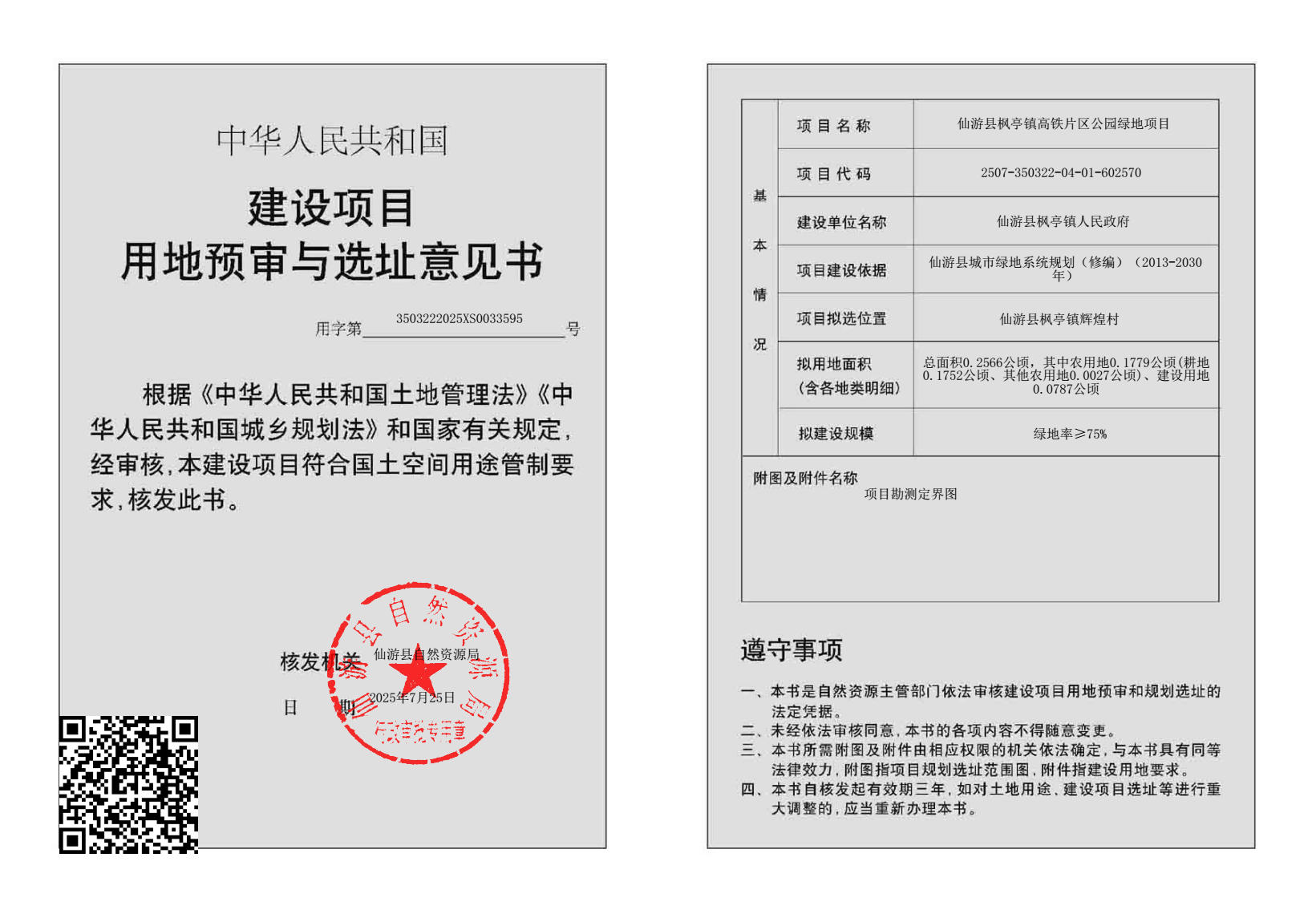 仙游县枫亭镇高铁片区公园绿地项目 |