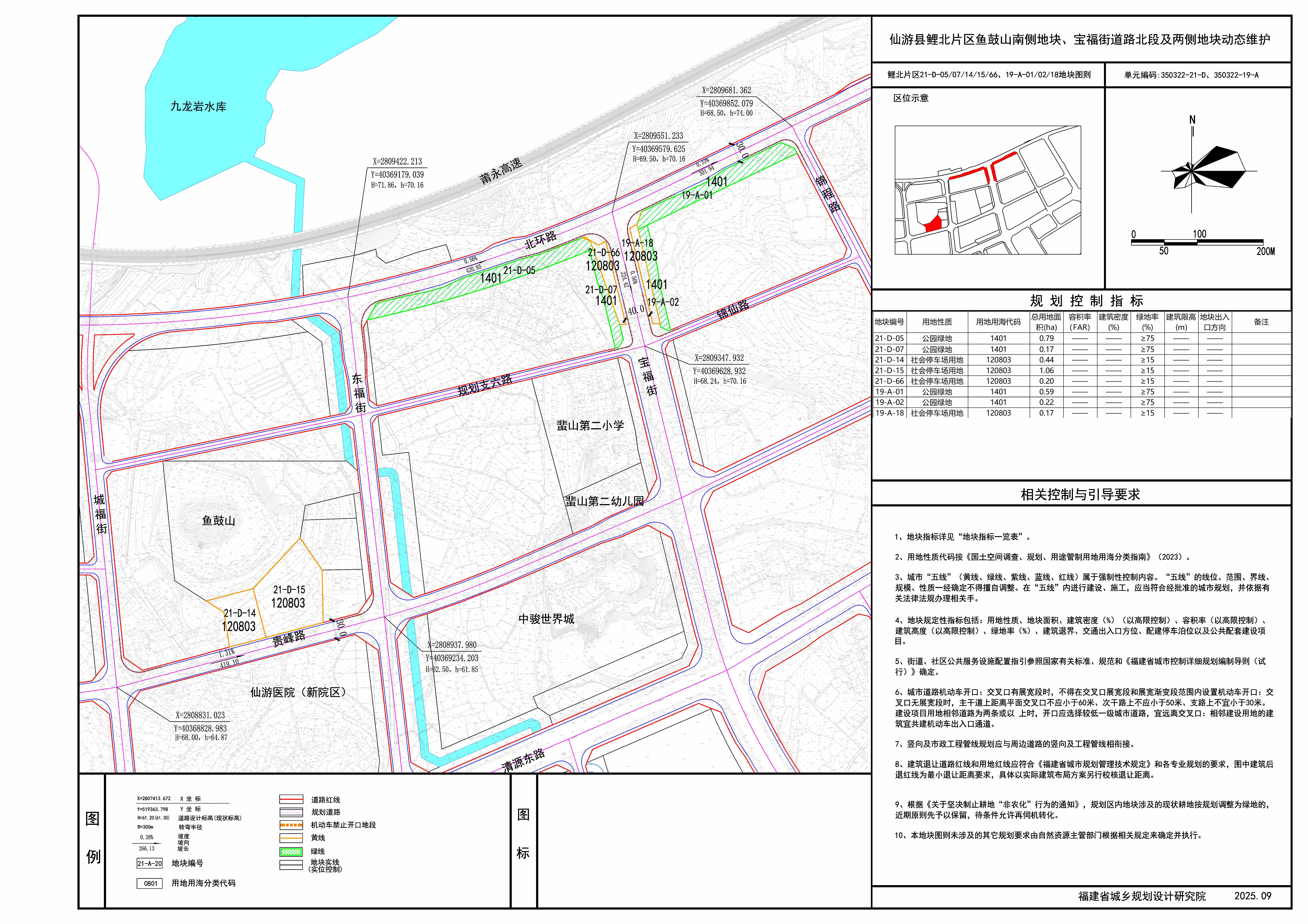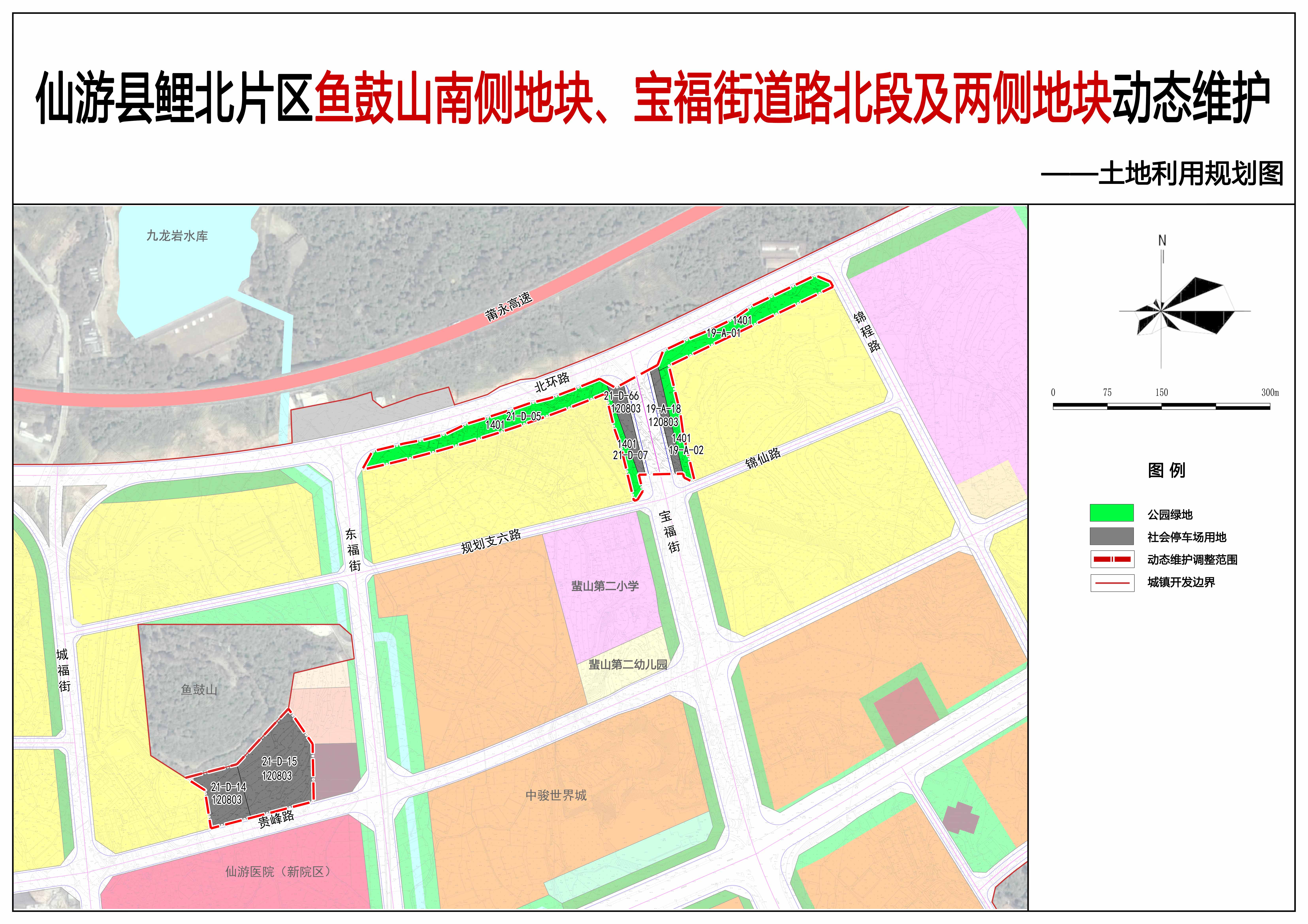 仙游县鲤北片区鱼鼓山南侧地块、宝福街道路北段及两侧地块动态维护,总面积约4.20公顷。