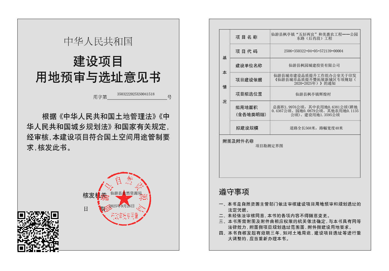 仙游县枫亭镇“五好两宜”和美惠农工程一公园 东路(后肖段)工程 |