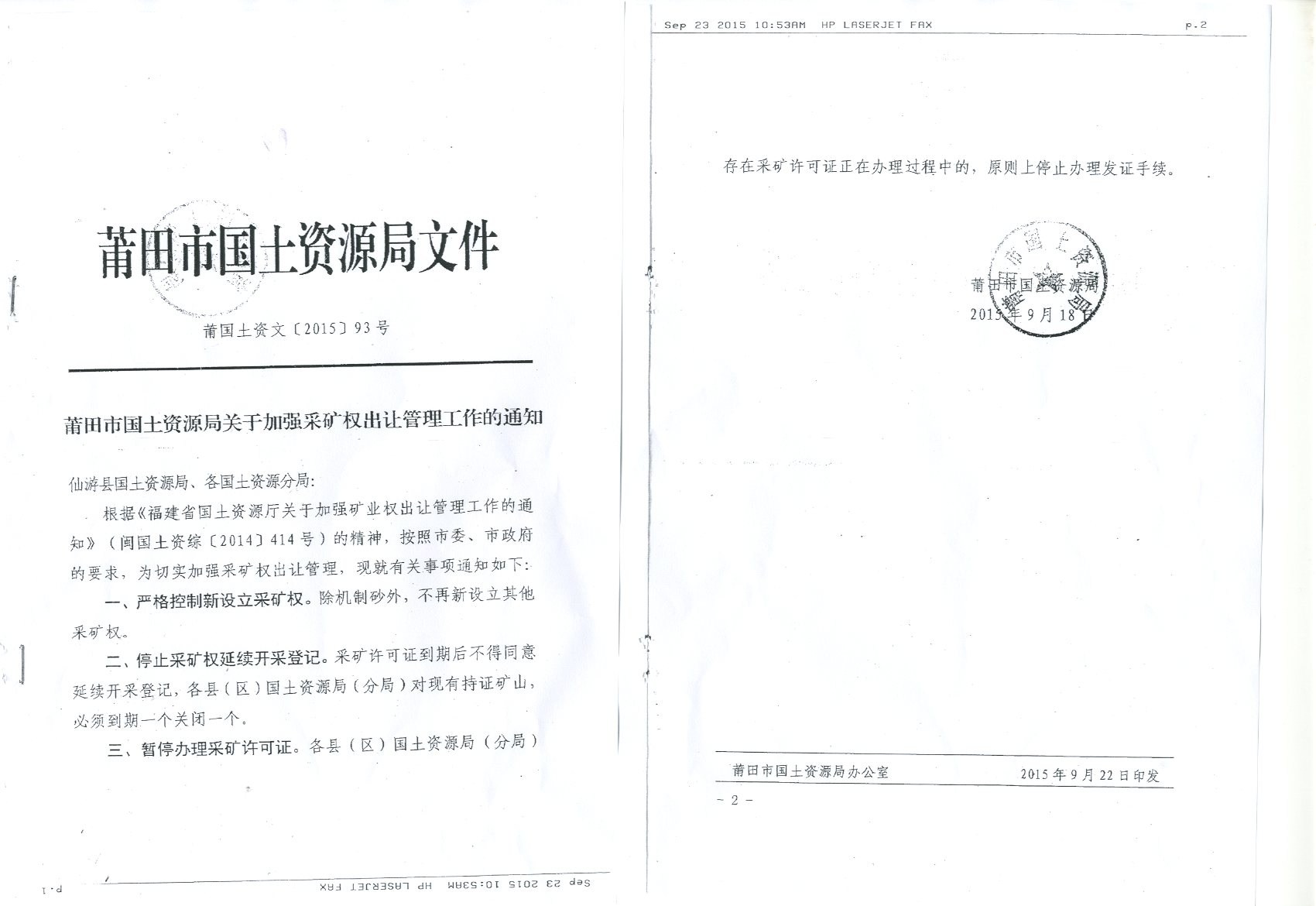 莆田市国土资源局关于加强采矿权出让管理工作的通知