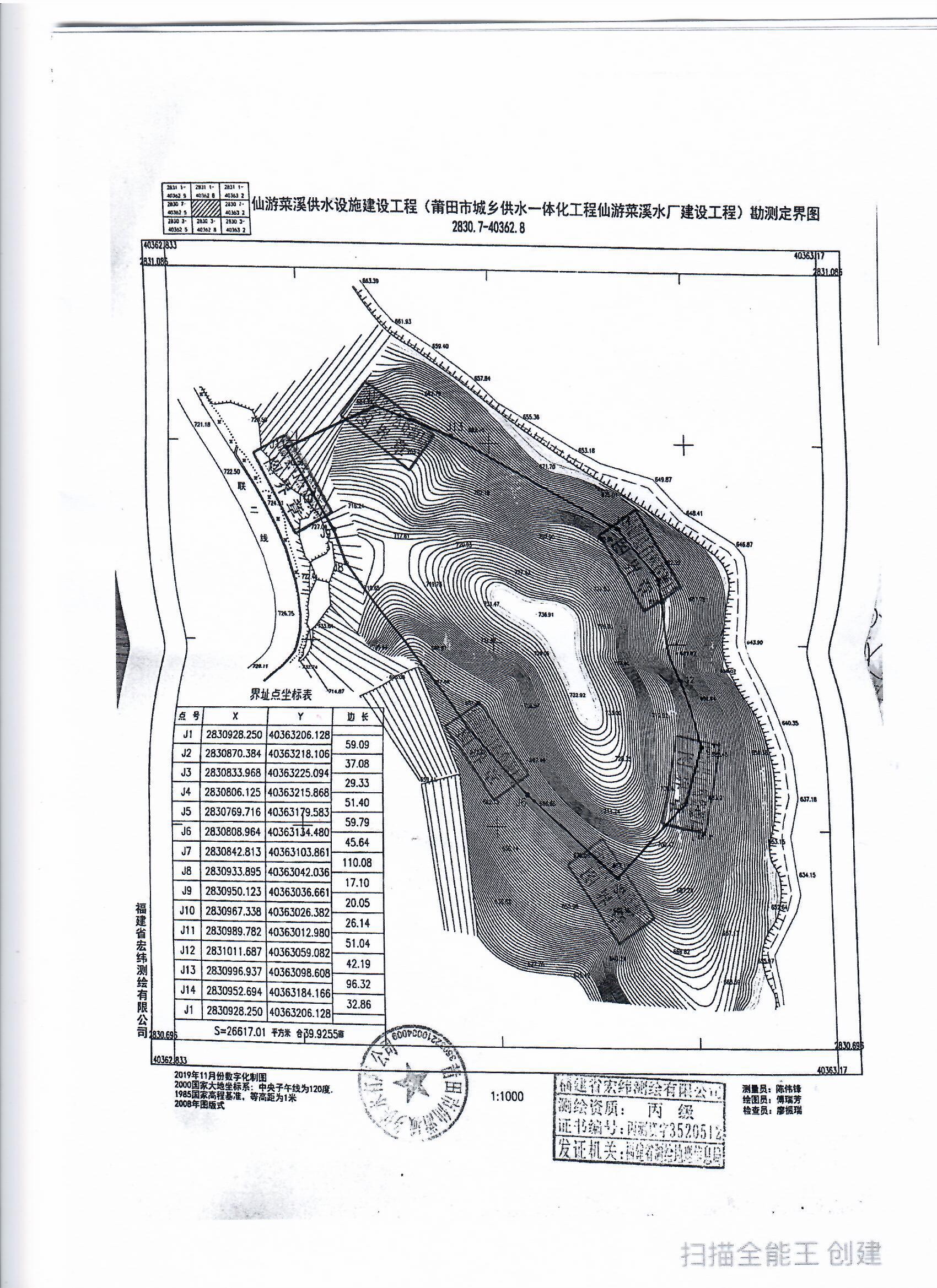 2.拟征地范围:四至范围详见仙游菜溪供水设施建设工程(莆田市城乡供水一体化工程仙游菜溪水厂建设工程)土地勘测定界图。