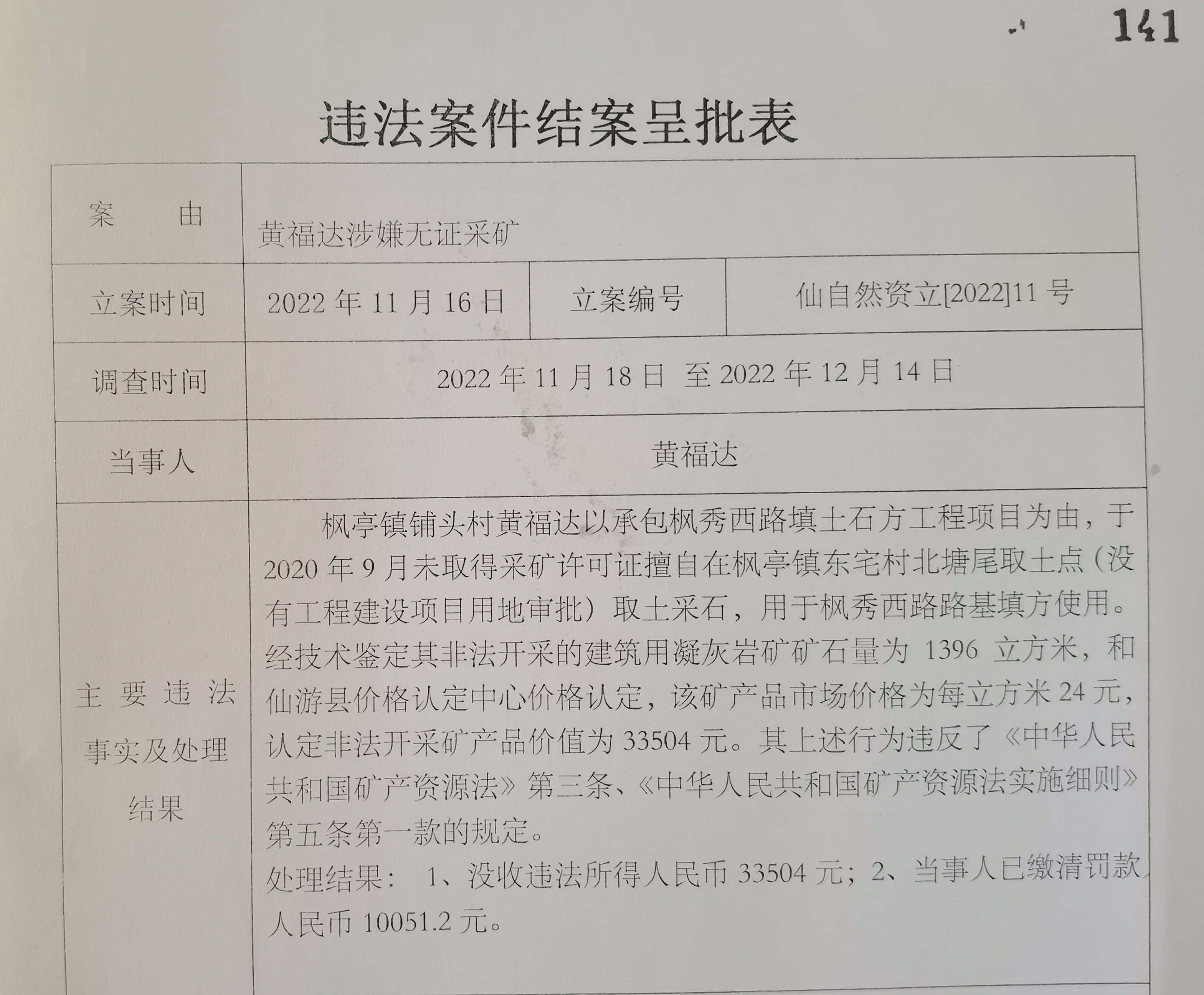 上述违法事实有下列证据证实:1. 黄福达的身份证复印件; 2、龙澄公司《营业执照》;3、《建设工程施工合同》;4、福建省林业局批准《使用林地审核同意书》及《准予延续使用林地审核决定书》;5、《关于仙游县枫秀西路道路工程项目临时用地核准的函》;6、《关于推进枫亭滨海新城产城融合项目建设的会议纪要》、《关于加快推进经济开发区枫亭镇项目建设的备忘录》、《关于加快推进经济开发区枫亭镇项目建设的备忘录》;7、询问笔录;8、现场勘测笔录;9、现场违法照片;10、《矿产资源破坏的价值技术鉴定报告》;11、仙游县价格认定中心《价格证明》;12、龙澄公司项目部情况说明;13、枫亭镇政府与下社村、东宅村签订《枫秀西路下社段取土点地面物补偿协议书》和《枫秀西路前段再次补量田地、果树、坟墓征地补偿协议书》。