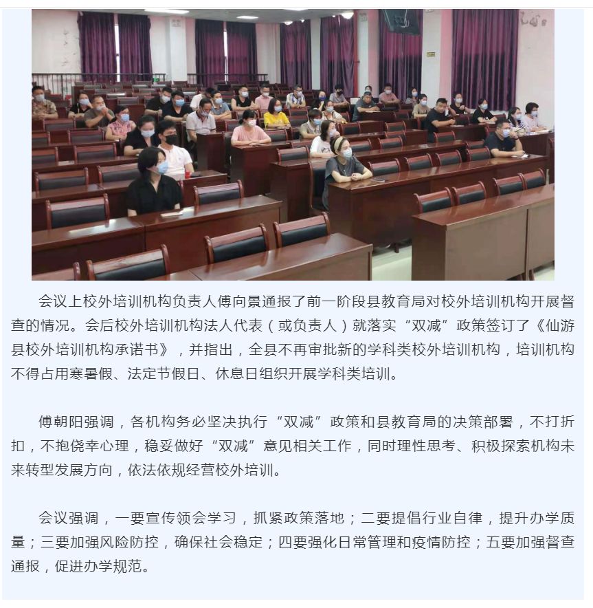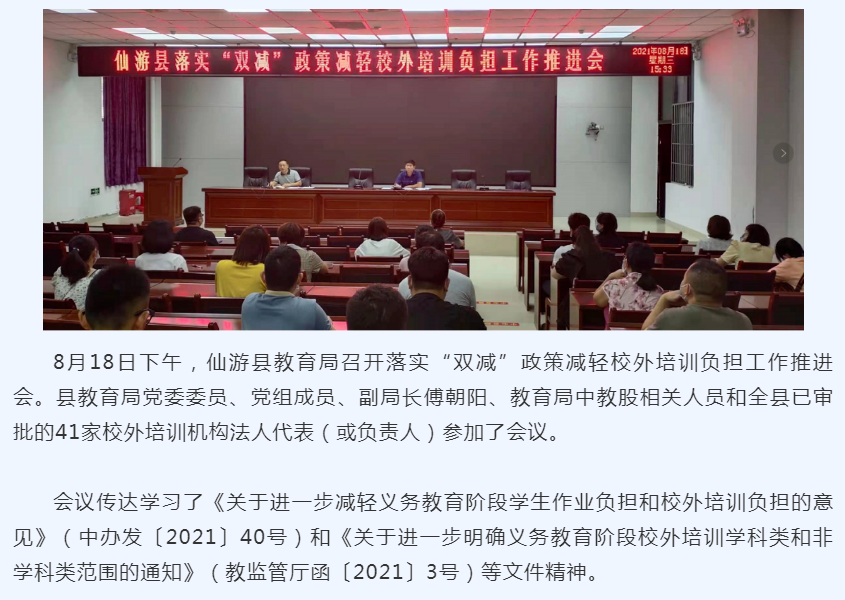 仙游县教育局召开落实“双减”政策 减轻校外培训负担工作推进会