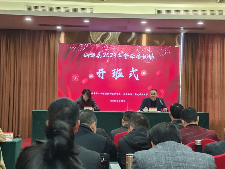 2月27日,仙游县2023年督学培训班开班仪式在漳州举行,仙游县教育督导室林峰副主任出席开班仪式并讲话,县教育局、县教育督导室相关人员以及参训人员73人参加开班仪式。