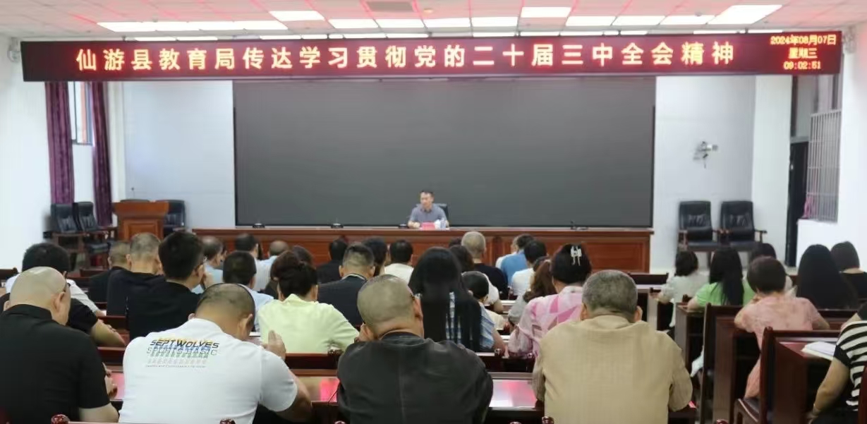 8月7日上午,仙游县教育局召开传达学习贯彻党的二十届三中全会精神会议。仙游县教育局党组书记、局长黄祥武主持会议并讲话。县教育局领导班子及局机关全体干部参加会议。