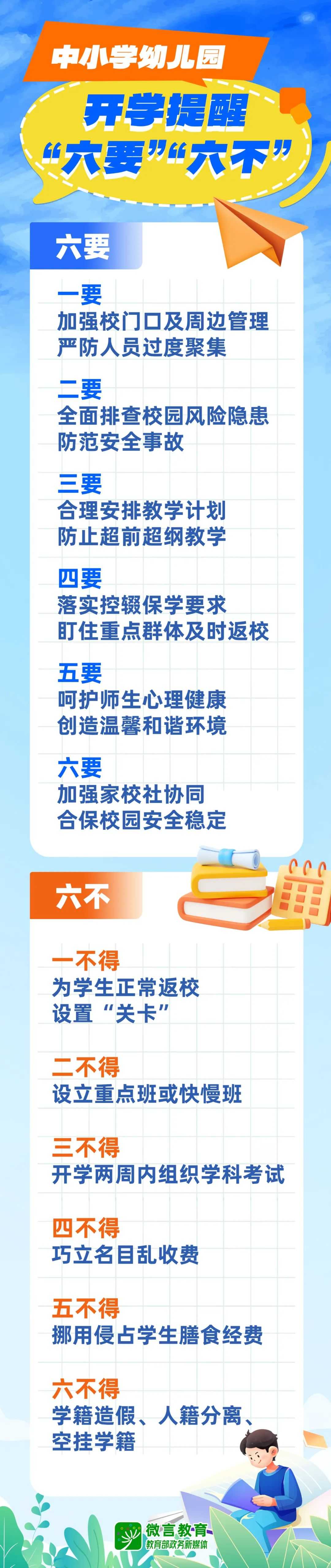 一图看懂!中小学幼儿园开学提醒“六要”“六不”
