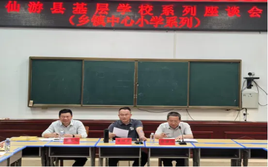 为深入推进“双减”政策的贯彻落实,进一步强化学校教育主阵地作用,全面提升课堂教学水平,提高课后服务质量,真正让学生成为“双减”政策的受益者,助推我县教育教学提质增效。2025年4月16日下午,县教育局在郊尾中心小学召开了基层学校乡镇中心小学系列座谈会。县教育局党组书记、局长黄祥武,教师进修学校校长郑捷斌,局办公室负责人、枫亭中心小学等部分乡镇学校校级代表、郊尾中心小学校级班子成员、部分中层行政及班主任、教师、家长代表等参加座谈会,会议由局党组书记、局长黄祥武主持。