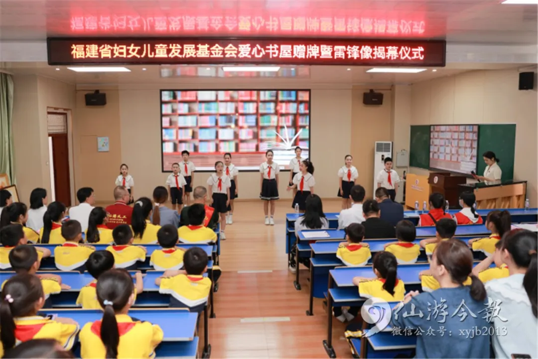 日前,仙游县城东中心小学举行爱心书屋揭牌暨雷锋像揭幕仪式。省妇女儿童发展基金会副理事长、“中国好人”游文晃等参加。