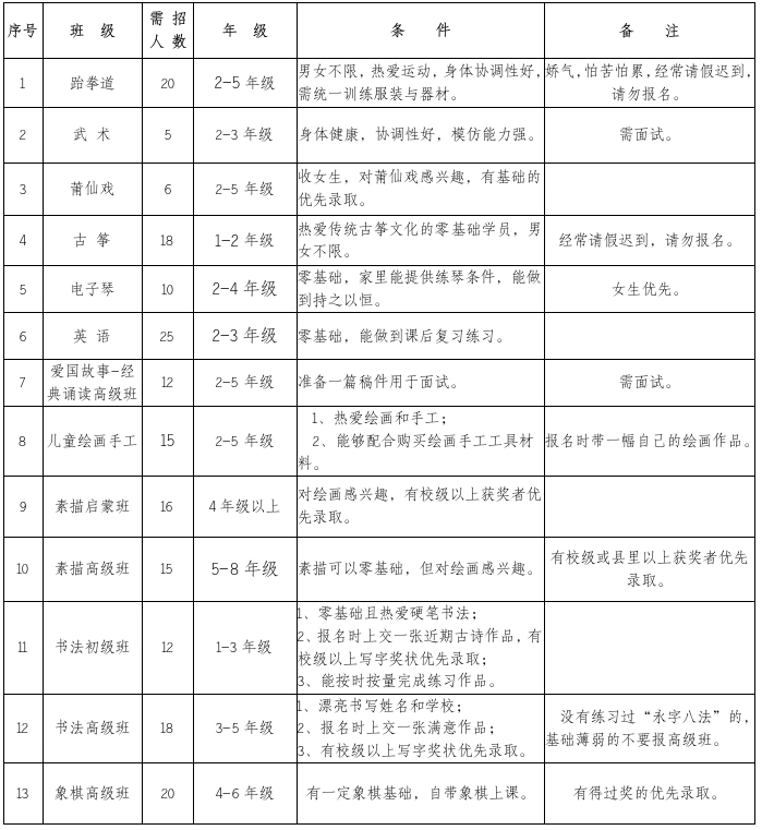 二、暑期部分培训项目将招新生或增收学生,具体如下: