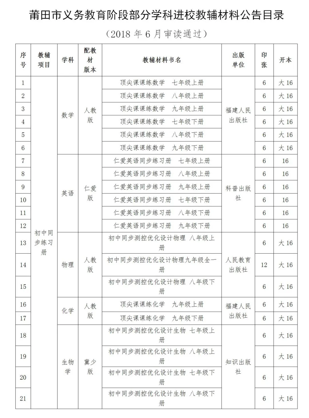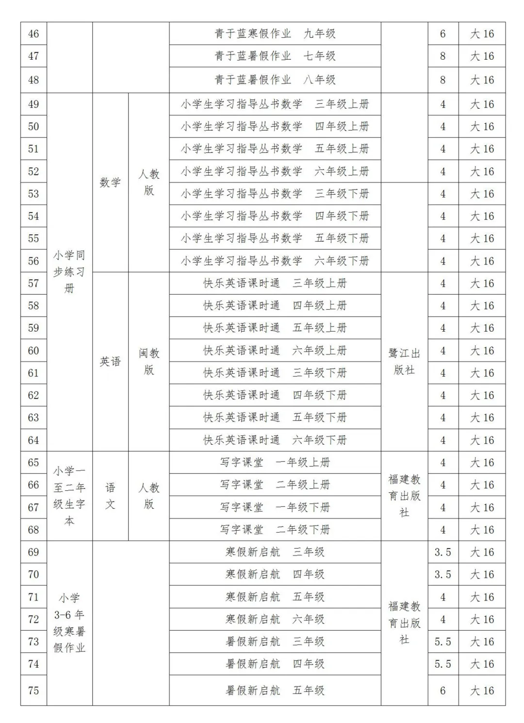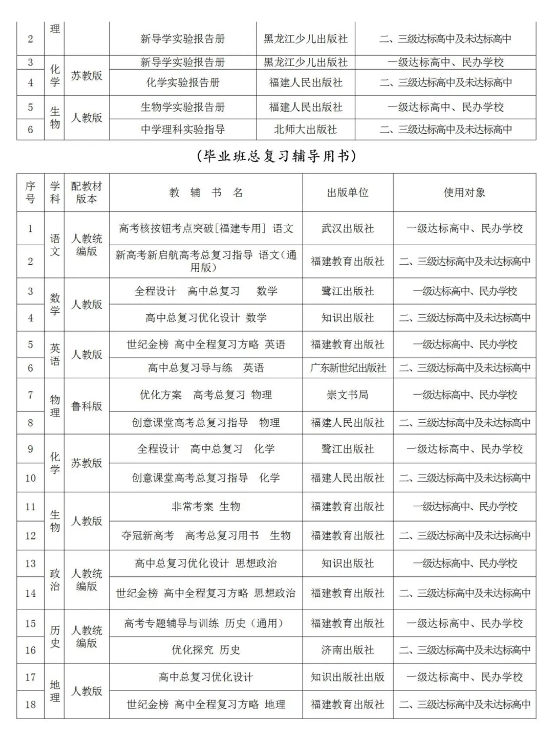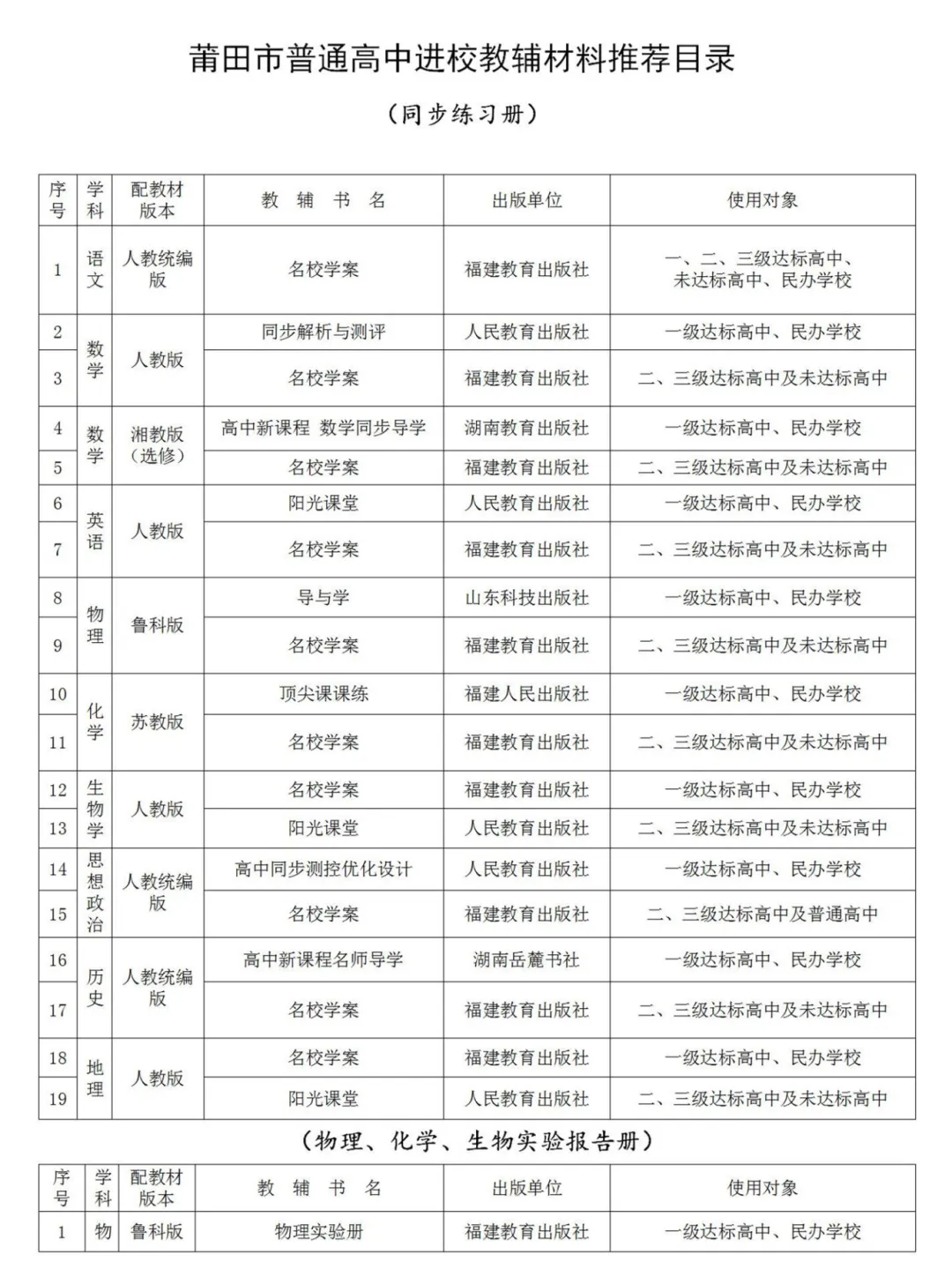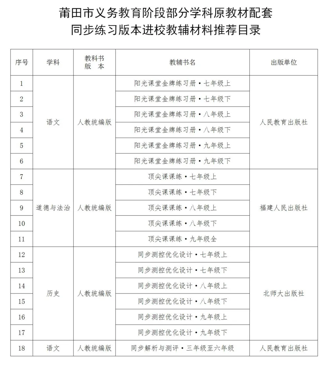 附:中小学进校教辅材料推荐目录