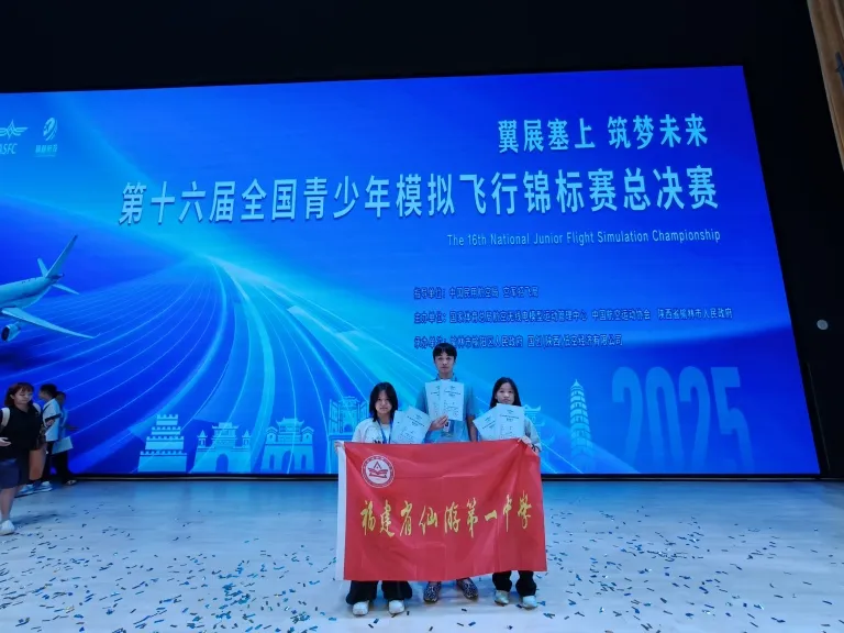 2025年8月6日至9日,第十六届全国青少年模拟飞行锦标赛总决赛在陕西榆林举行,赛事为教育部白名单赛事,吸引全国27省370支队伍超5000人参与。福建省仙游第一中学首次参赛便创佳绩:王松宇获高中乙组全国一、二等奖,苏琪获初中乙组全国一等奖。