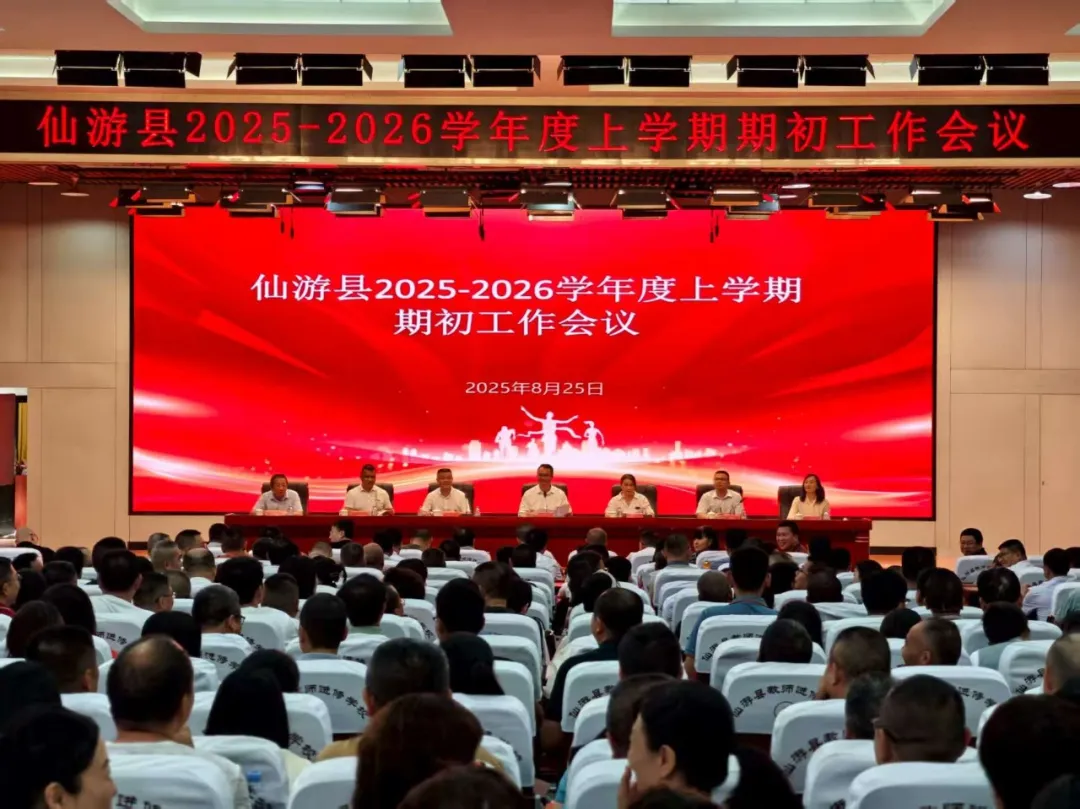 8月25日上午,仙游县教育系统2025-2026学年度上学期期初工作会议在教师进修学校培训大楼报告厅召开,局班子成员,县教师进修学校校级领导,各股室中心负责人,各中小学(幼儿园)校级领导参加会议。会议由局党组书记、局长黄祥武主持。