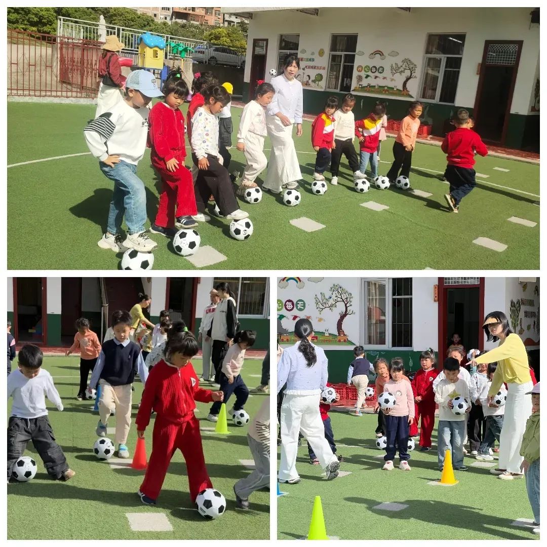 教师团队则围绕"幼儿足球游戏化教学"展开联合教研。蜚山幼儿园教师林怡娟老师现场示范《森林足球冒险》课程,通过情境创设将基本动作训练融入故事游戏。双方就"如何平衡趣味性与安全性""足球活动中社会性发展支持策略"等展开深度研讨,明确"健康第一、兴趣为本"的幼儿足球教育理念。