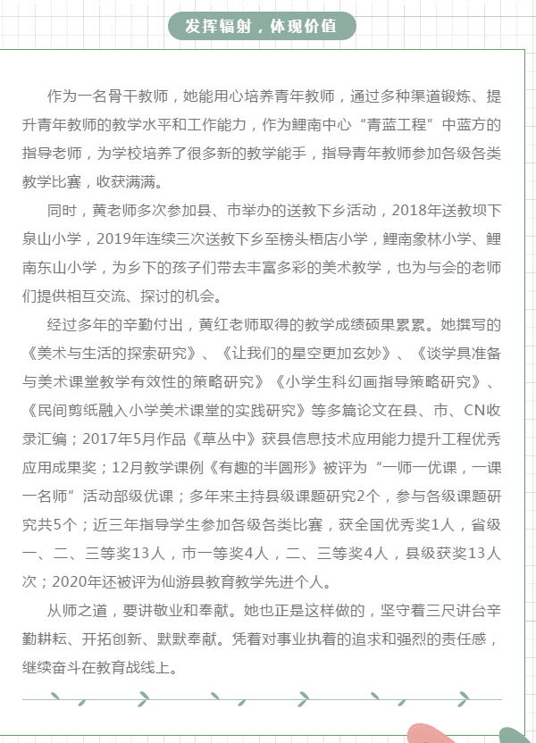 三尺讲台展风采 一片丹心育桃李——记鲤南中心小学黄红老师