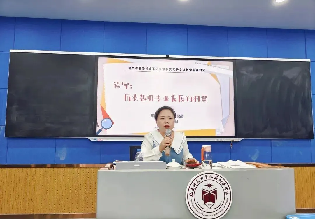 为促进“双减”后阅读的普及工作,增强学科阅读研究工作的针对性和实效性,莆田市中学历史学科阅读主题教研活动暨省级课题研讨会于2024年5月17日上午在仙游县举行。此次活动不仅吸引了来自各校的历史教师,还邀请了省普教室教研员刘熙老师共同参与,就如何更好地将阅读融入历史学科教学,提升学生的学习兴趣和学科素养进行了深入探讨,并就《整本书阅读视角下的初中历史史料实证教学实践研究》省级课题组、市级课题组的课题研究工作进行阶段小结。本次活动不仅是一场学术的盛宴,更是一次教学理念的碰撞与交流。