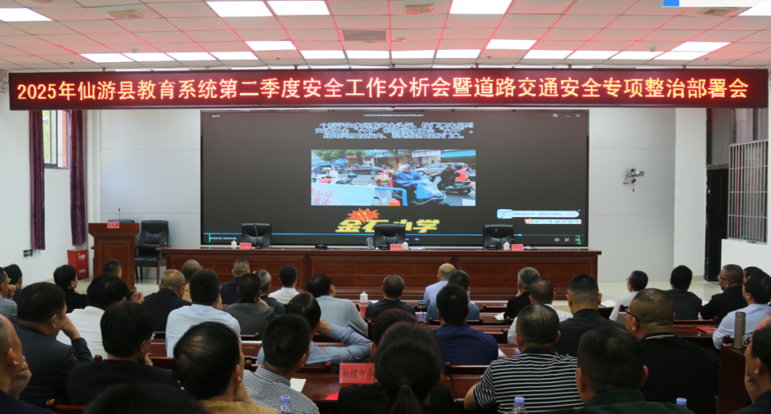 4月15日,仙游县教育系统2025年第二季度安全分析会暨道路交通安全专项整治部署会在县教育会场召开。县教育局副局长傅永泉主持会议,各股室中心负责人、各校(园)党组织书记及校(园)长共150余人参会。会议通过警示教育、问题剖析、专项部署等环节,系统推进校园安全综合治理。