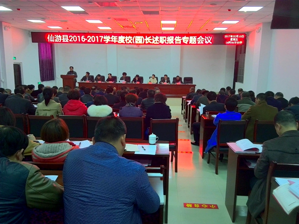 为给新学年工作起好头,迈好步。2月10日下午,仙游县2016-2017学年度校(园)长述职报告专题会议在县教育局一楼会议室顺利召开。县委常委、宣传部长吴国华,县政府副县长吴兰芳出席会议;县教育局班子成员、各股室中心负责人,完职中、初级中学、中心小学、九年制学校、县直幼儿园校(园)长,共计100余人参加了会议。会议由县教育局党委书记、局长黄朝阳主持。