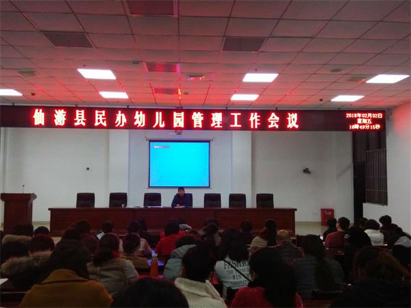 本网讯 2月2日,仙游县教育系统在县教育会场召开2018年仙游县教育系统“书记校长周论坛+机关干部周例会”学习交流活动暨仙游县民办幼儿园管理工作会议,会议由县教育局党组成员、副局长傅朝阳主持,全县县直幼儿园、各中心幼儿园园长、教研员以及持证民办幼儿园园长等将近200人参加了会议。