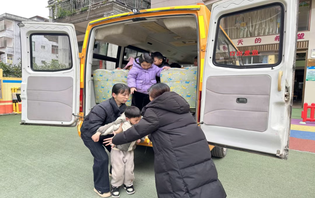 在校车安全演练中,司机果断停车、开启应急门,随车教师组织幼儿30秒内全部撤离至50米外安全区域。