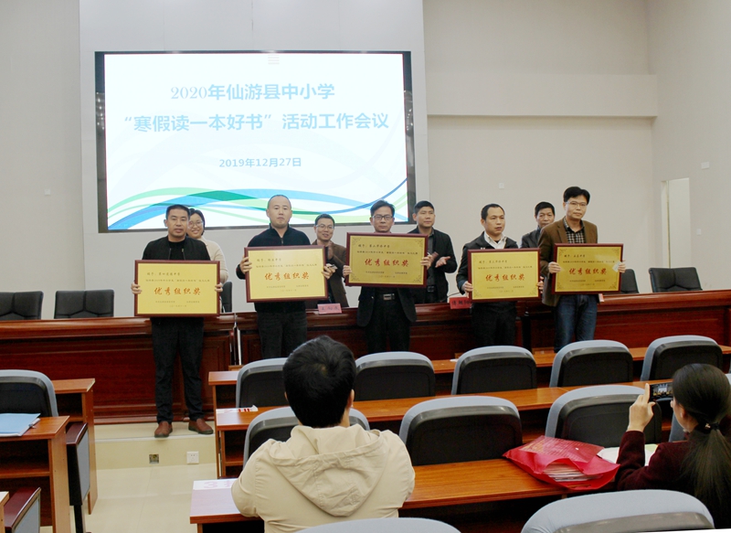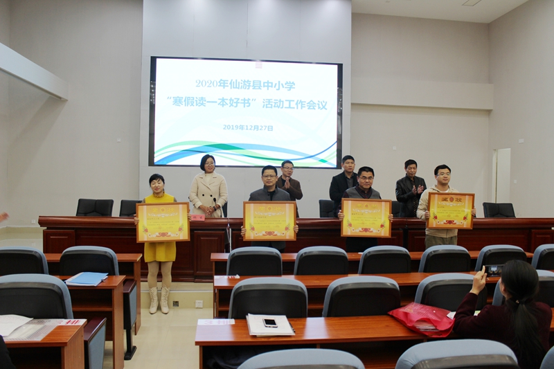 福建新华发行集团仙游分公司总经理、县青少年爱国主义读书教育活动组委会副主任连建才宣读了第26届爱国主义读书教育活动、暑假读一本好书活动、经典诵读大赛等一系列表彰文件。大议表彰了第26届全国及省、市、县青少年爱国主义读书教育活动获奖单位和个人代表。第26届全国青少年爱国主义读书教育活动各项比赛中,我县师生团结奋进、勇于拼搏,比赛成绩亮点突出、硕果累累。县教育局再次获得了组织优秀奖,仙游一中杨学鹏老师获得全国教师特等奖,坝下中心小学林琴霞老师获得全国教师优秀奖;坝下中心于洁小学王栩瑾、大济蒲山小学林怡、仙游一中林彩燕等3位学生获得特等奖,仙游一中的林彩燕同学不负众望,比赛成绩突出,参加全国组委会组织的表彰会和夏令营活动;枫亭开发区和平小学朱燕妮等43位同学获得一、二、三等奖及优秀奖。县教育局林智炜、大济中学朱辉英等6位同志分别被评为全省第二十六届青少年爱国主义读书教育活动优秀组织者和优秀辅导教师;仙游县大济中学郑意等35名同学分别被评为全省第二十六届青少年爱国主义读书教育活动优秀学生;仙游县坝下中心小学吴榆萱同学获得全省第二十六届青少年爱国主义读书教育活动小学组讲故事比赛二等奖。仙游一中严梅芳等49位师生活动市级表彰。大会还表彰了仙游县第五届“暑假读一本好书”征文比赛、第三届中小学师生经典诵读大赛获奖学校及师生。县实验小学、县第一道德中学等10所学校获得了第三届中小学师生经典诵读大赛活动优秀组织奖。