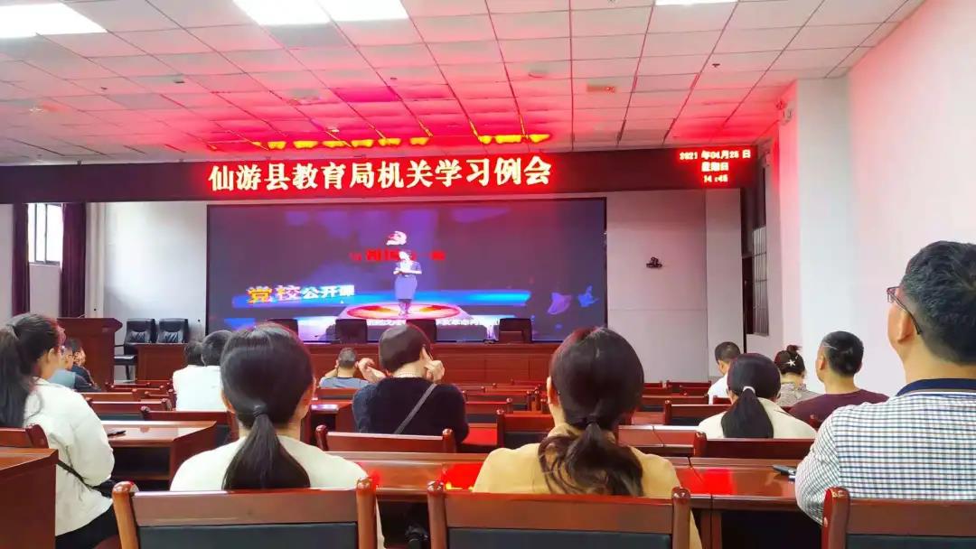 2021年4月25日,仙游县教育局在教育会场召开局机关学习例会,会议由教育局党委委员、党支部书记、党政办负责人林庆廉主持,局机关、督导室班子成员及全体干部职工参加会议。