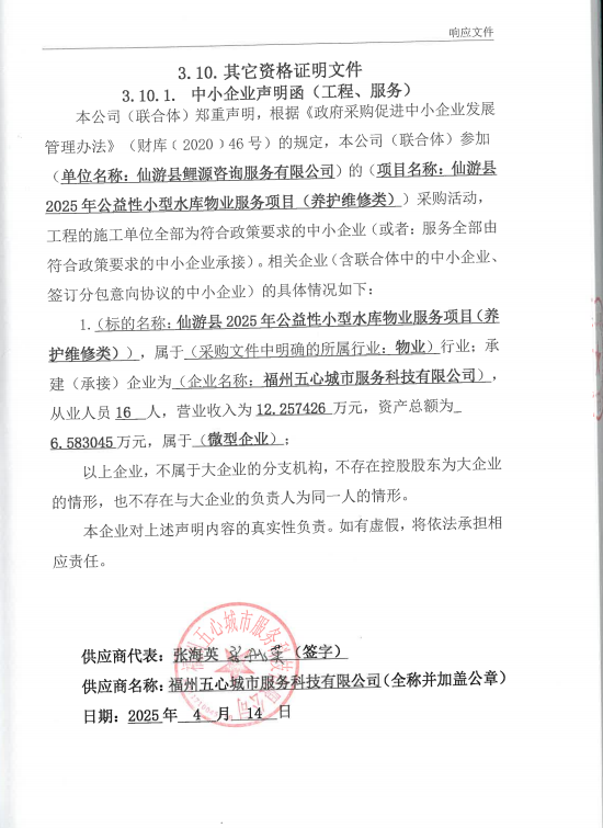 仙游县2025年公益性小型水库物业服务项目(养护维修类) |