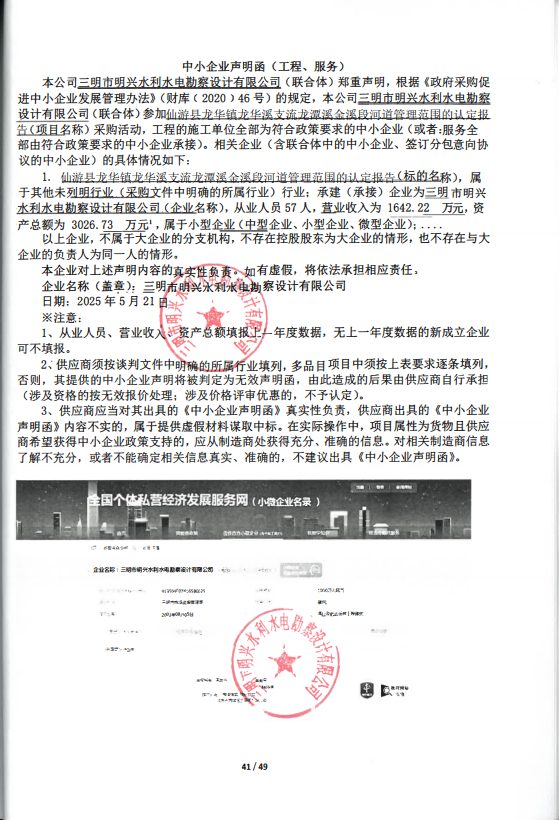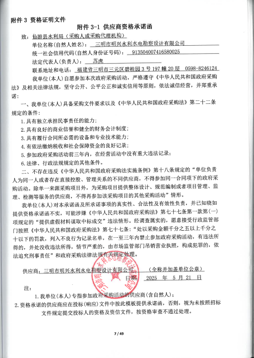 供应商名称:三明市明兴水利水电勘察设计有限公司