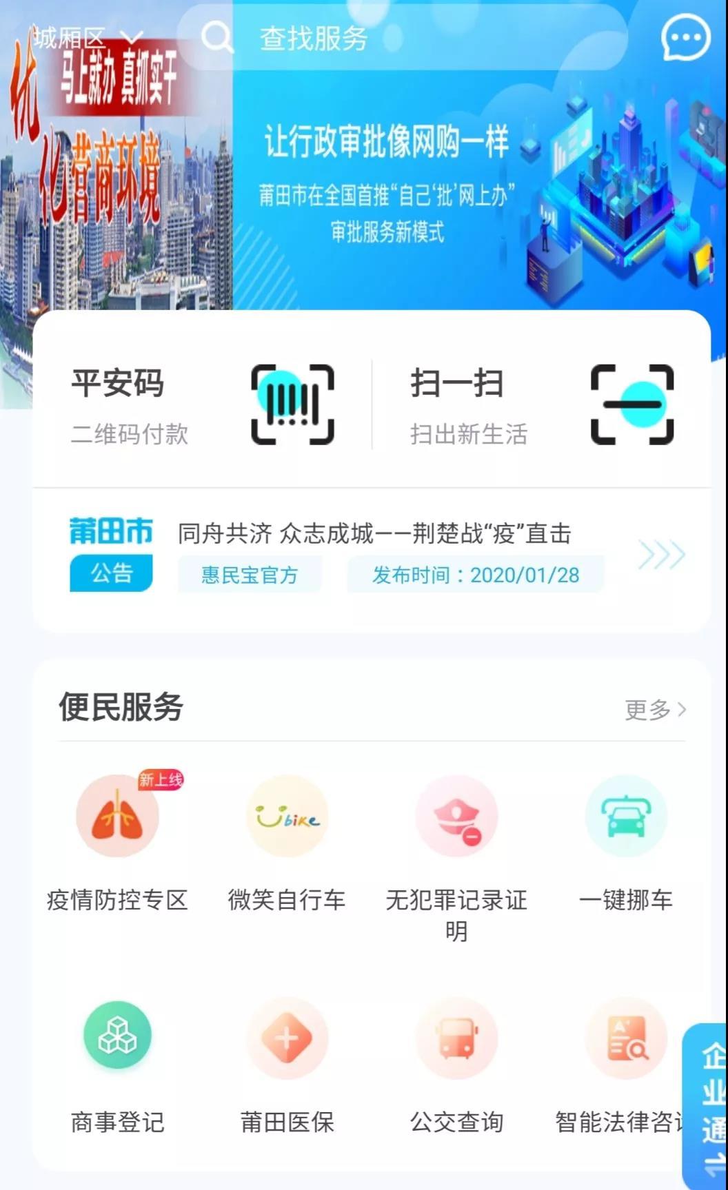 仙游县行政服务中心关于疫情防控期间政务服务有关事项的通告