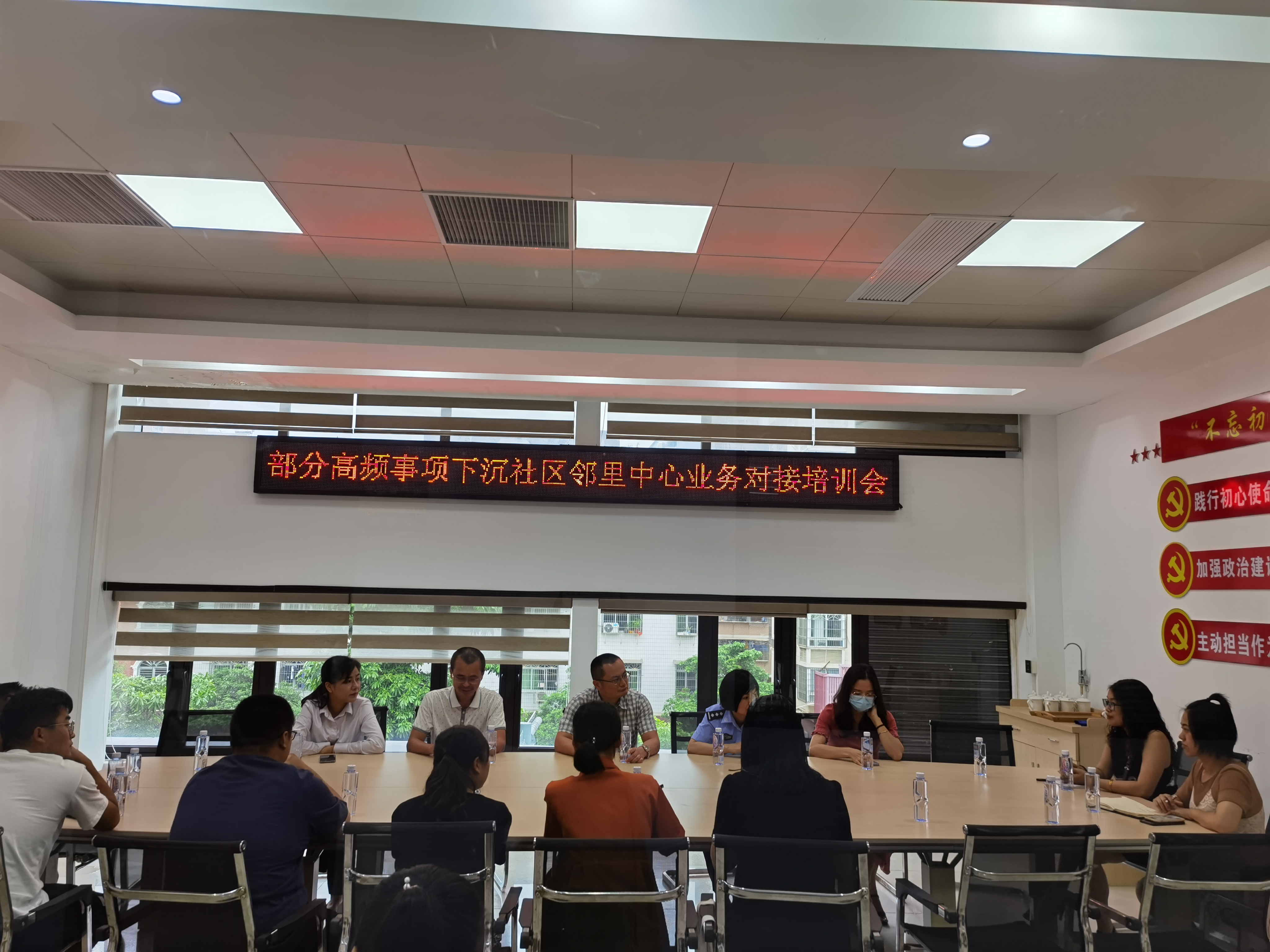 为充分发挥基层党组织战斗堡垒和广大党员的先锋模范作用,加快推进“党建+”社区邻里中心便民服务代办点建设,畅通群众表达诉求渠道,方便群众生活和办事,2021年6月25日下午仙游县行政服务中心在南桥社区开展“部分高频事项下沉社区邻里中心业务对接培训会”。