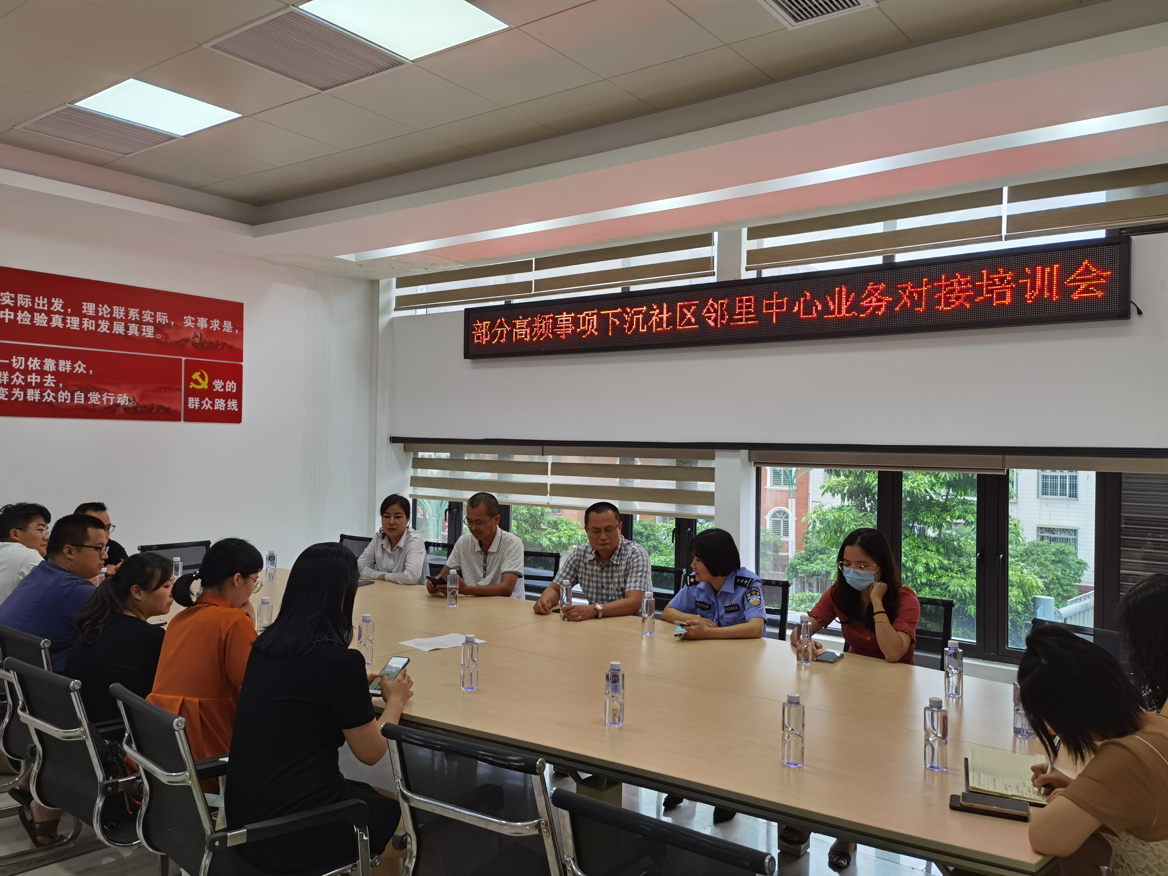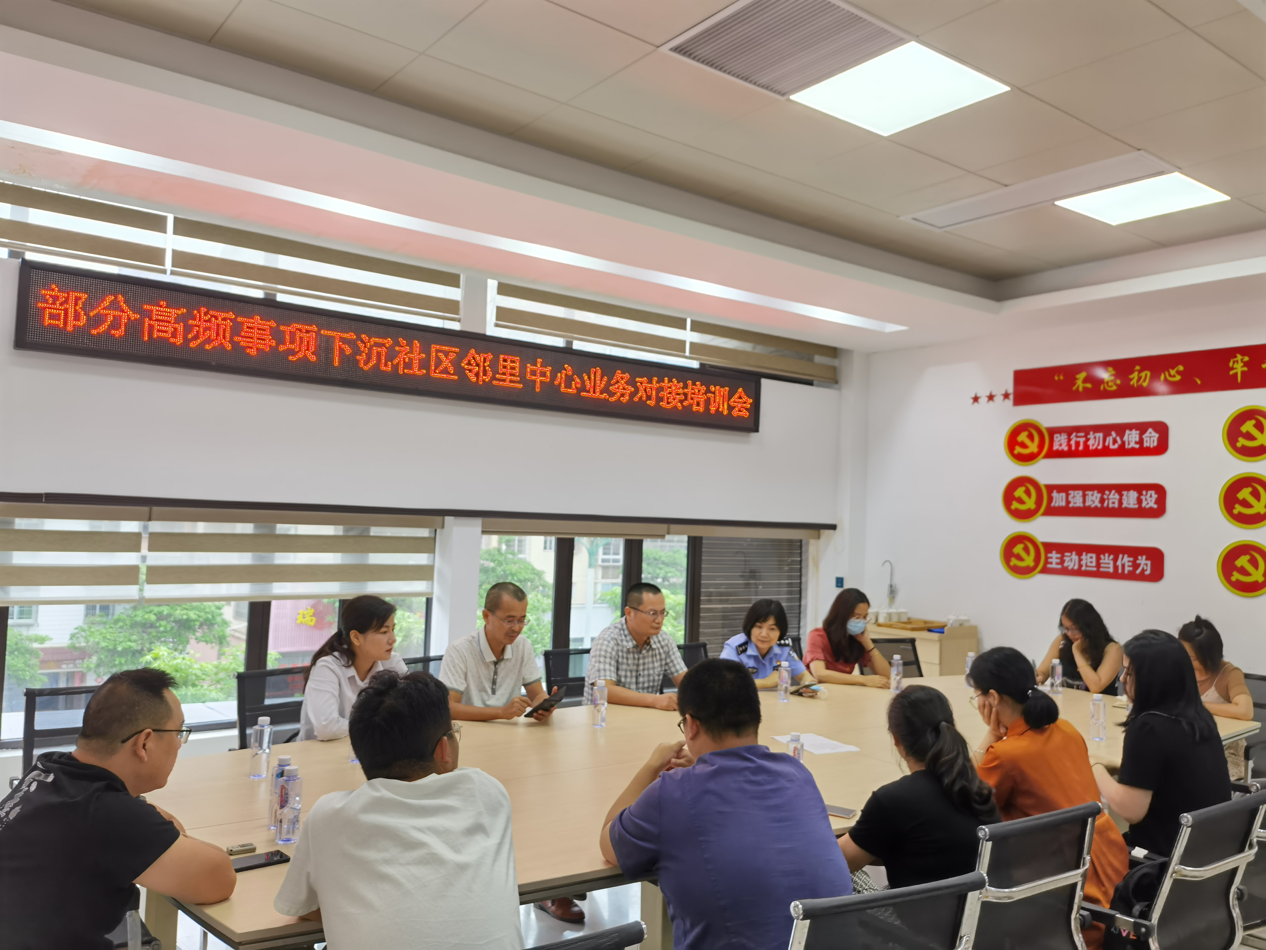 会上,公安局户政中队、人社局医保社保窗口人员为参会社区办事员讲解线上业务处理相关流程,积极表示欢迎社区办事员到中心对应窗口进行专业学习、交流。中心副主任陈绍杰表示接下来将逐步把“就近办”常办事项和社区“马上办”可办事项下沉前移至“党建+”社区邻里中心便民服务窗口办理。让“马上办”成为首选、“就近办”成为常态、“掌上办”成为优先,“自助办”成为补充,“网上办”成为托底,打造“好办事”中心,做深做实“党建+事有所办”工作。