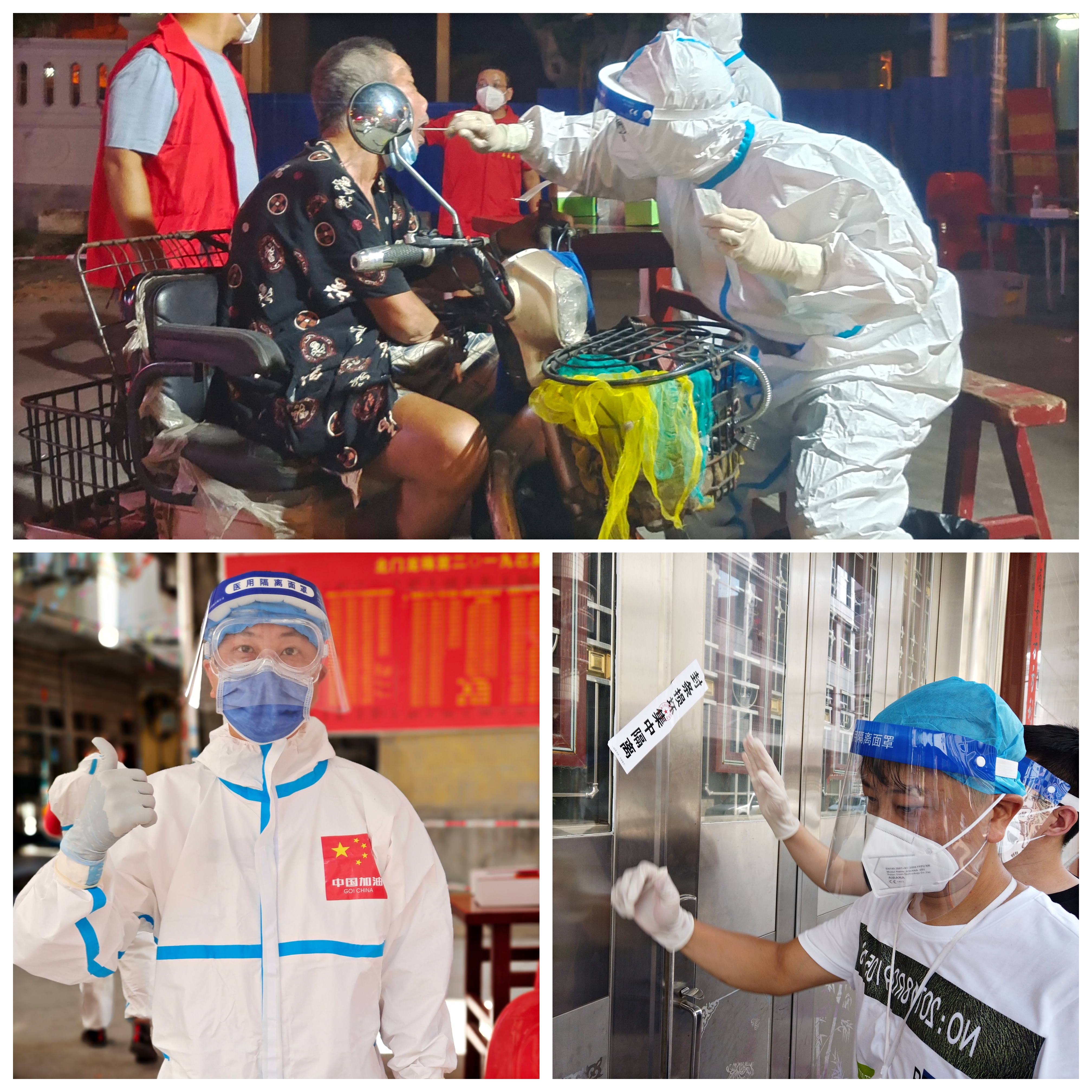 协助核酸检测采样。身处抗疫一线负责协助核酸检测采样的他们,时间紧,任务重。身穿防护服的他们或顶着烈日,或冒着瓢泼大雨,或穿着被汗水浸湿的衣裤上门为民众进行核酸检测采样。连续十几日来,从第1轮、第2轮、第3轮......部分村(社区)甚至已经第十几轮核酸检测了,他们日夜兼程,坚守岗位,彰显了党员干部的使命与担当。