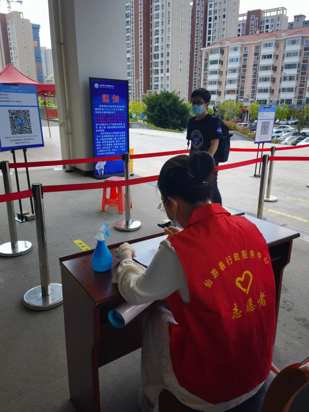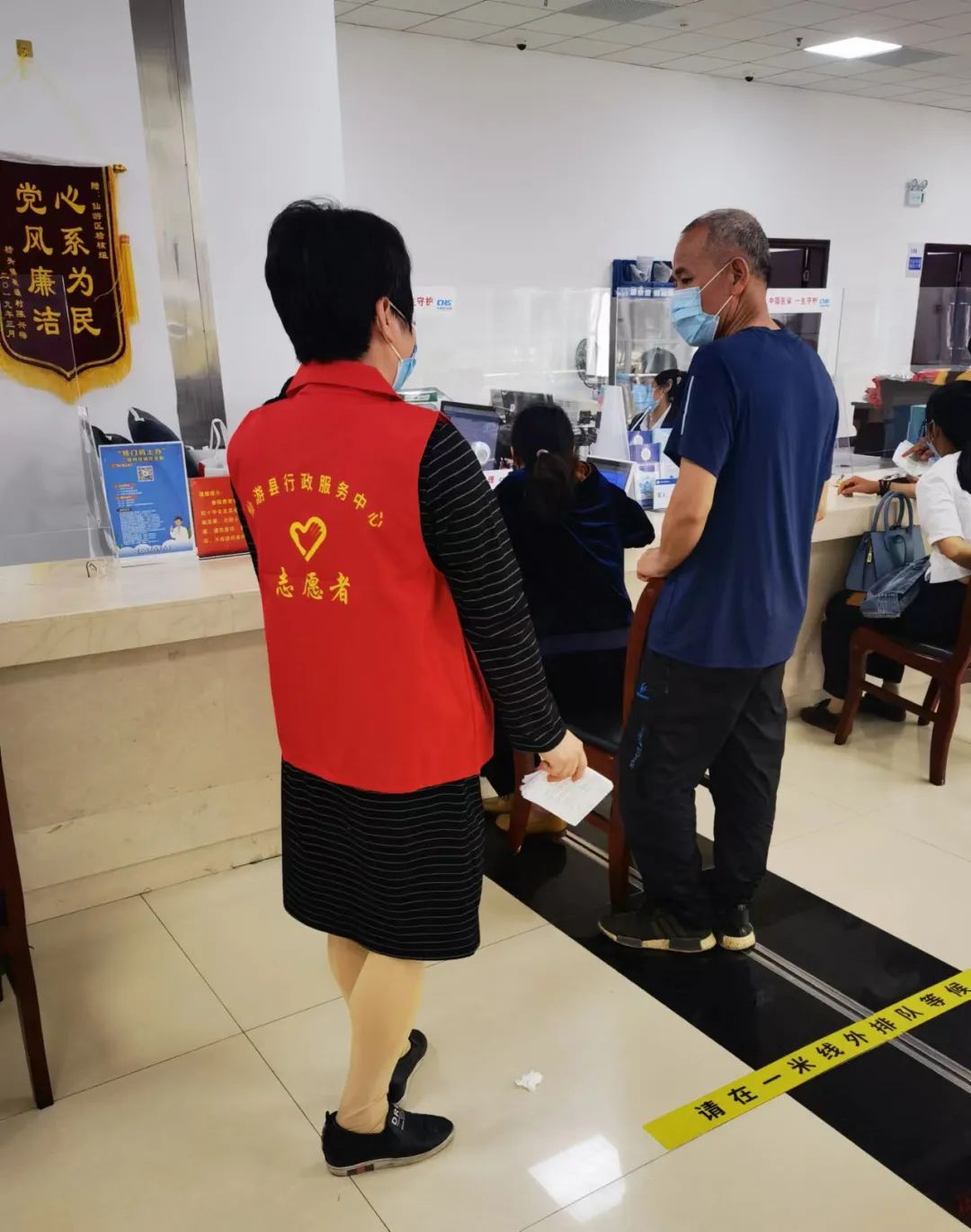 严格把控。中心组建一支由二十多名干部志愿“红马甲”服务队伍,在中心大厅门口积极引导办事人员有序排队、间隔一米线,规范佩戴口罩,扫张贴码,核验健康码、行程码,通过体温监测后有序进入办事大厅。同时安排志愿者在人流较多的高频办事窗口做好引导和“一对一”服务,主动靠前服务,防止人员聚集。