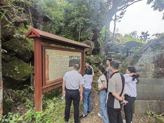 活动中,党员干部循着先辈的足迹,沿着石板路拾级而上,走过山道,穿过石洞,来到遗址所在地。经历时光的沉淀,遗址依旧庄严伫立,静静地诉说着革命先辈的英雄事迹和奋斗历程。党员干部们或驻足观看,或随手拍照,身临其境重温那段波澜壮阔的革命岁月,追忆革命战争年代的红色往事,感受革命先辈的坚定信念和不屈不挠的斗志。